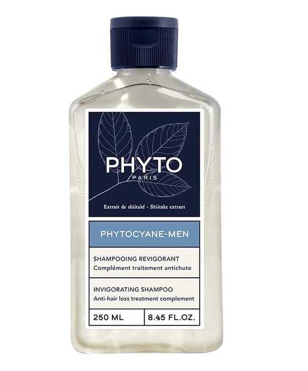 Для укрепляющего ухода за волосами и регулярного очищения косметическая марка PHYTO предлагает использовать шампунь Phytocyane-Men Shampoing Revigorant. Средство ориентировано на решение потери и ослабления волос у мужчин. Формула шампуня на 81% состоит из компонентов натурального происхождения.
